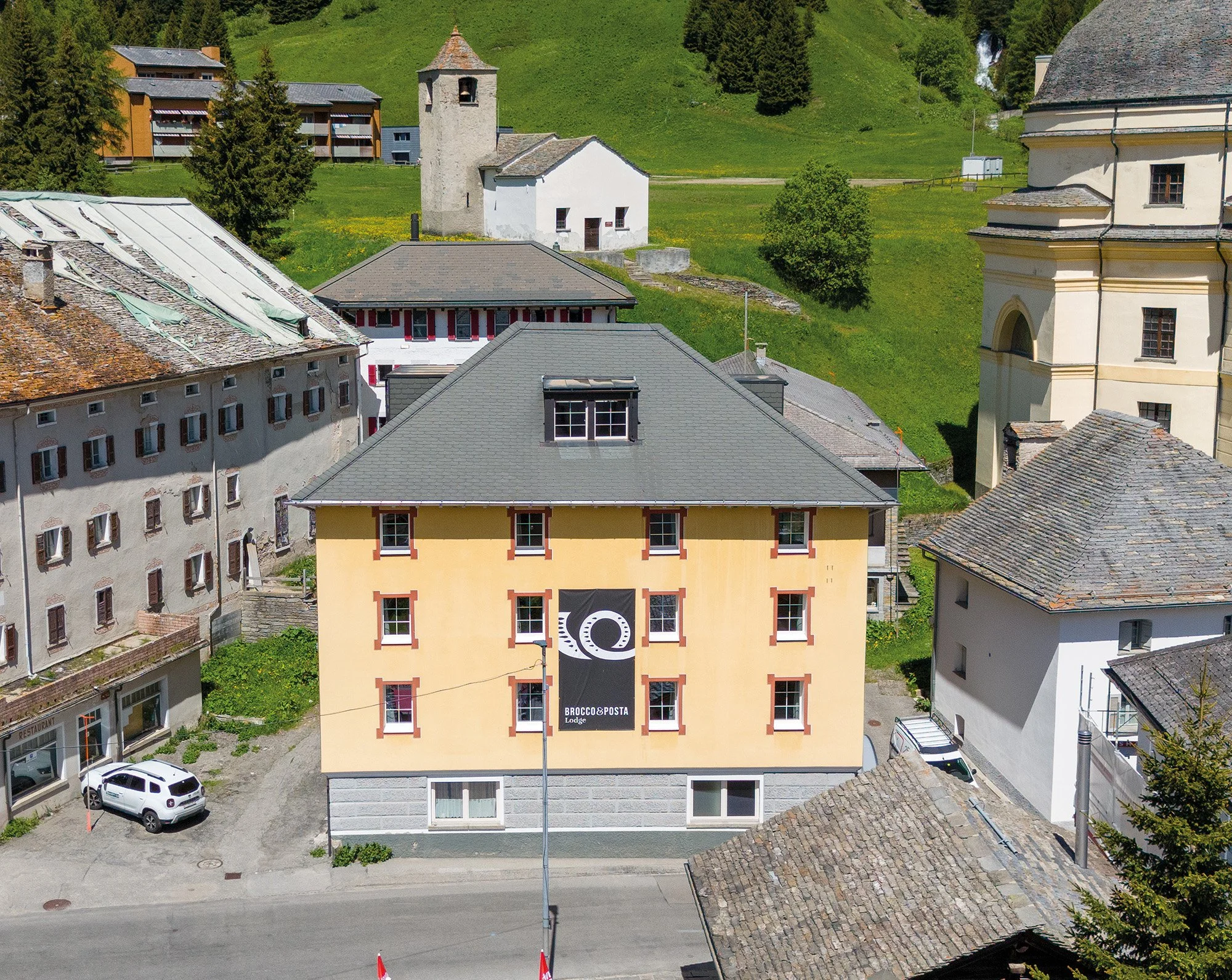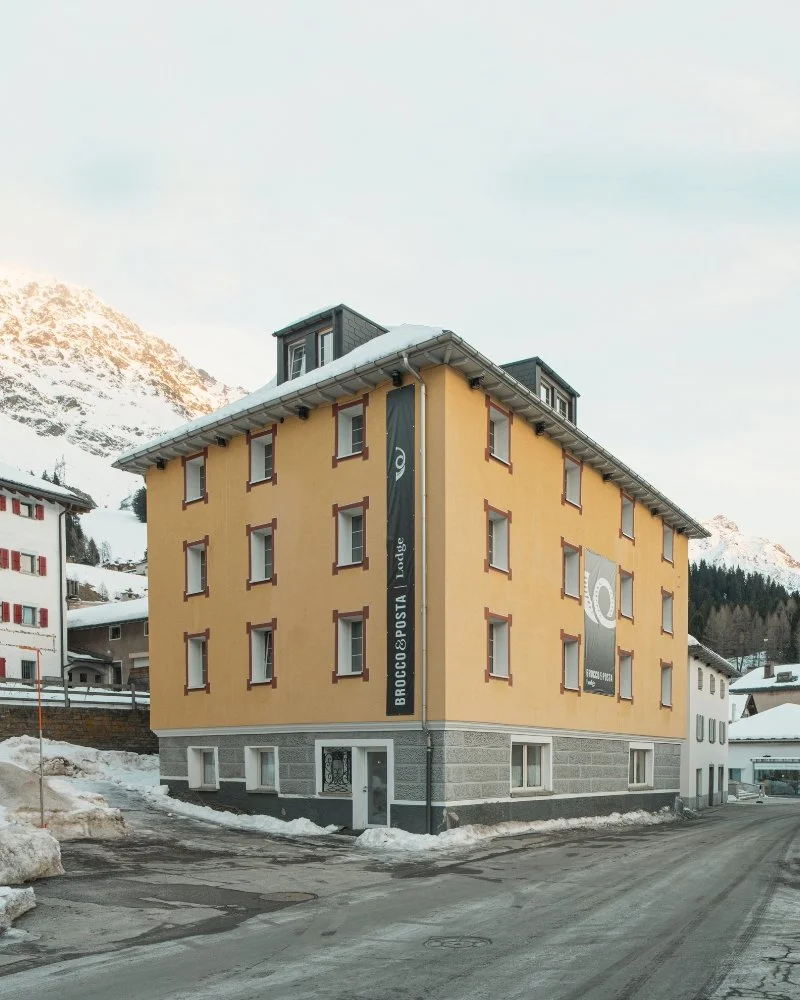 Il Lodge Brocco & Posta è una soluzione giovane e smart per soggiornare a San Bernardino. Diciotto camere accoglienti, arredate con materiali naturali e colori caldi, decorate con legno locale in uno stile minimalista.